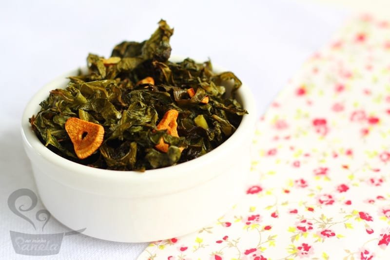 Para acompanhar fizemos essa couve crocante e um creme que levou 1 alho poró médio cortado bem pequeninho misturado a 2 colheres de sopa de creme de ricota.