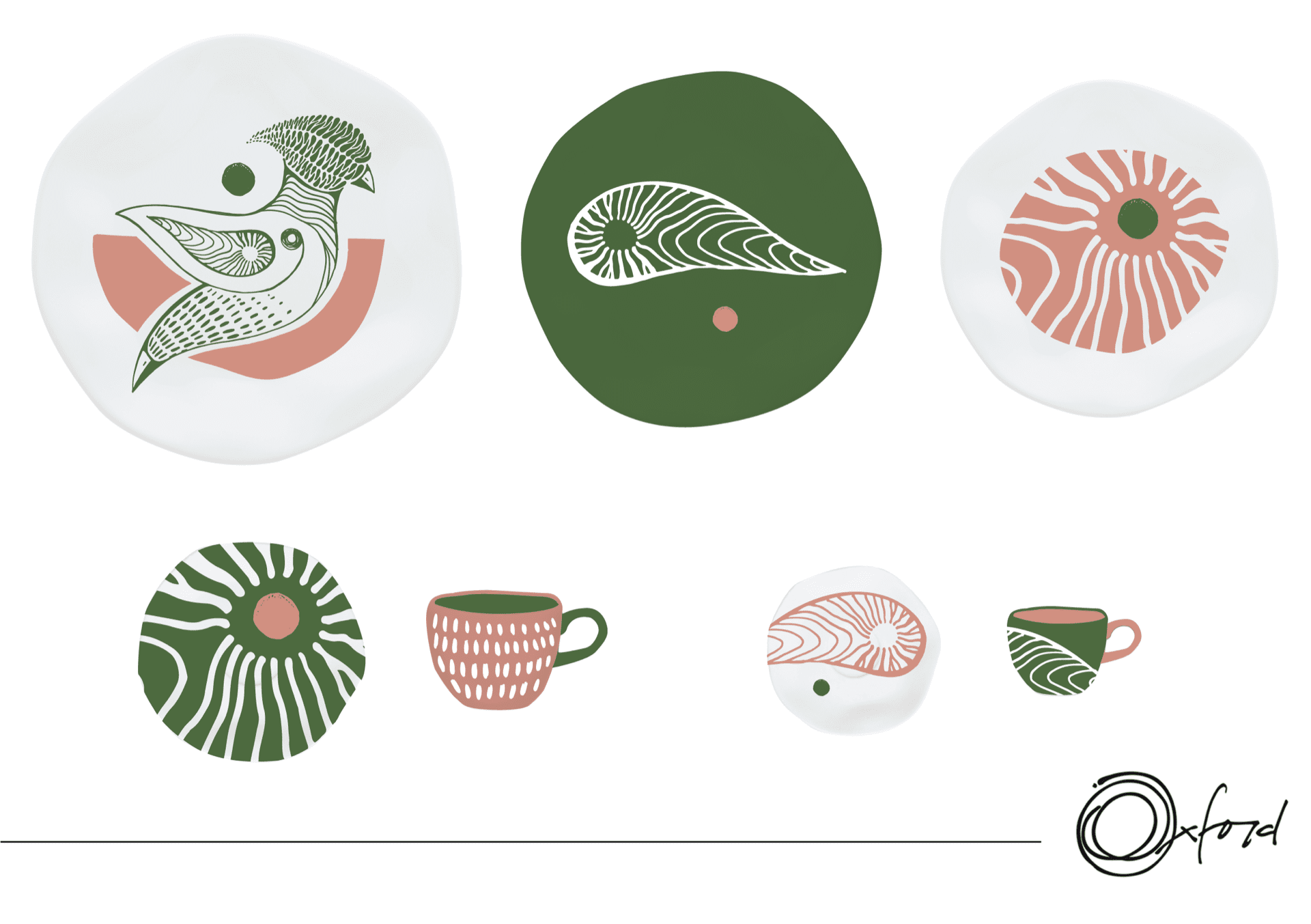 Aqui, formas orgânicas são usadas para retratar a natureza de modo estilizado. Os traços soltos criam um aspecto primitivo e harmonioso, em tons suaves ou vibrantes.